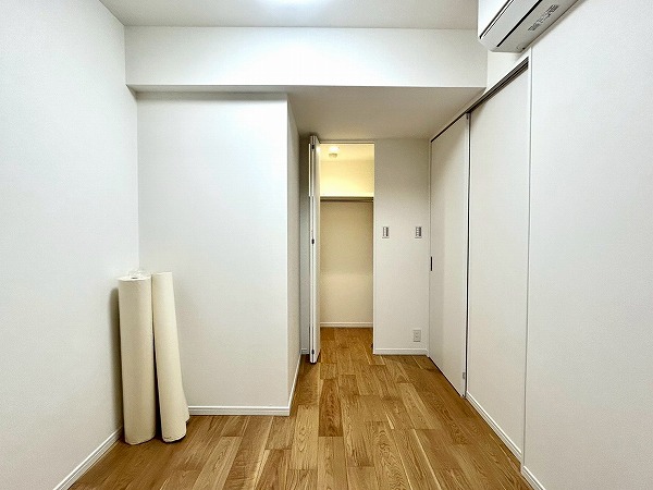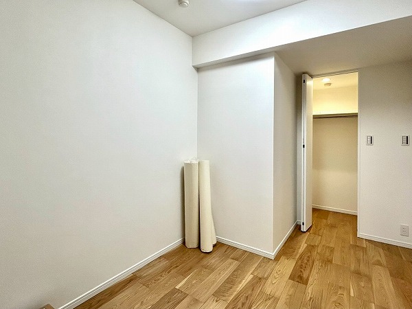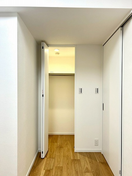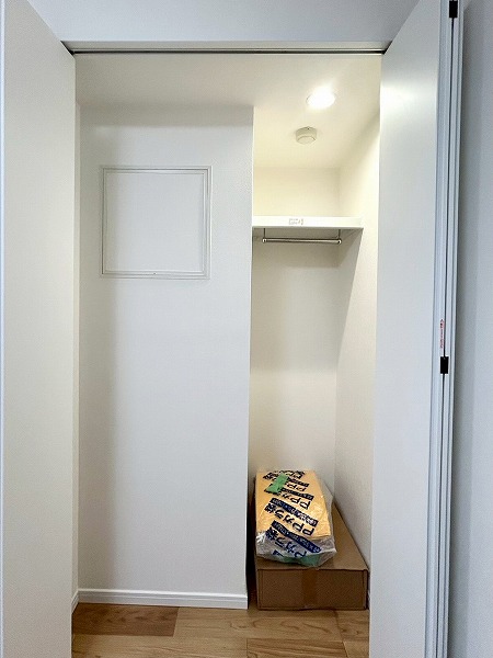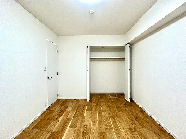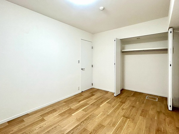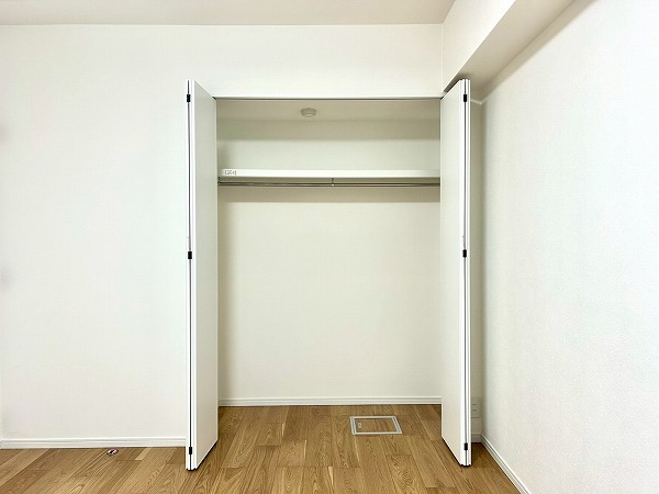 約7.5帖の洋室は広々としており、使い勝手が良さそう。大きめのクローゼットも付いているので衣類などもしっかり収納できそうですね。ハンガーラック上にも収納スペースがあり、季節外れの衣類等も入りそうですね。