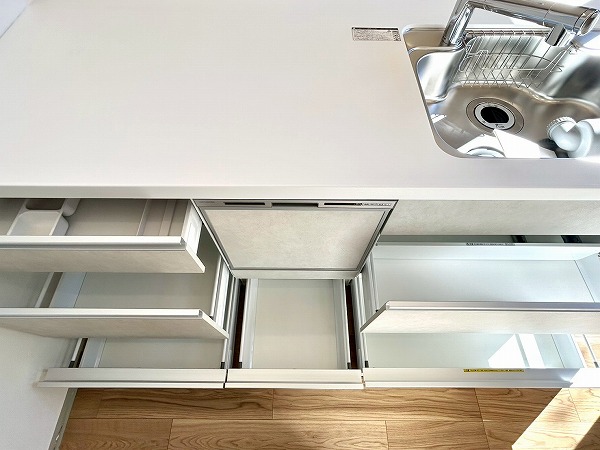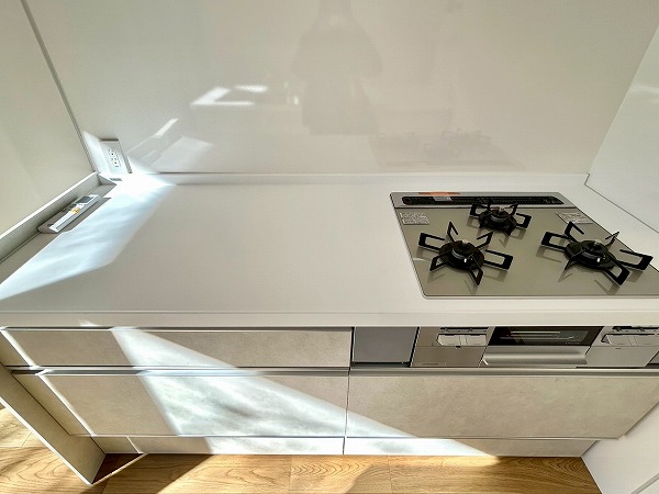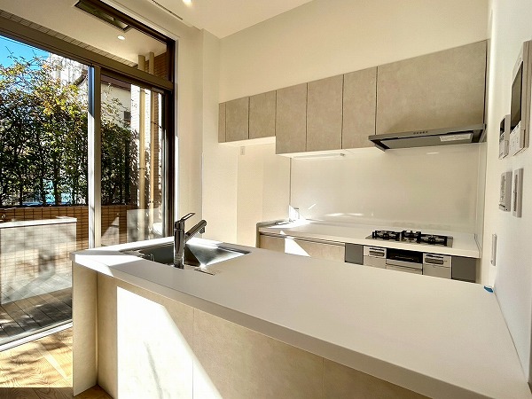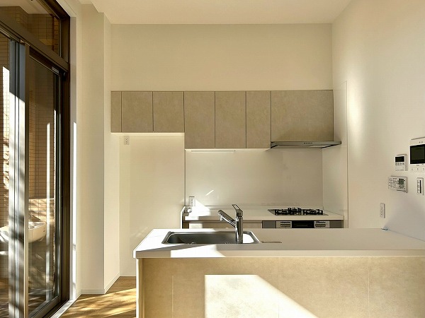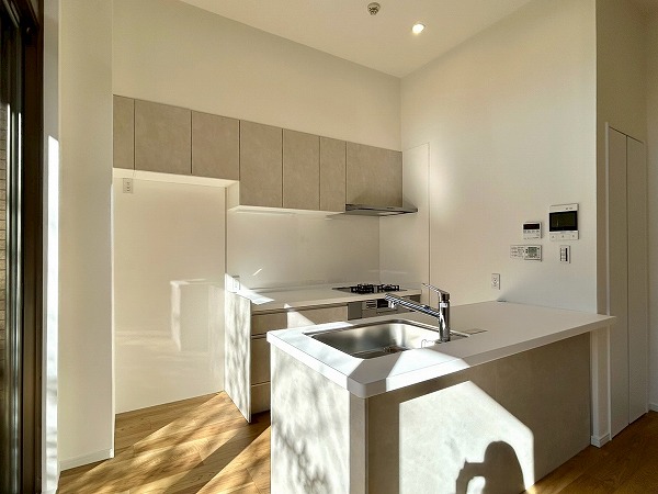 Ⅱ型のキッチンとなっており、調理スペースの広さが魅力的。2つに分かれている為、収納も豊富です。明るい陽差しが射し込み、気持ちよく料理が出来そうです♪