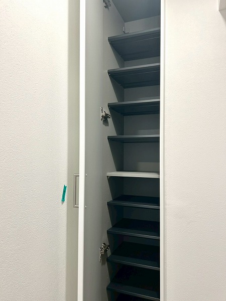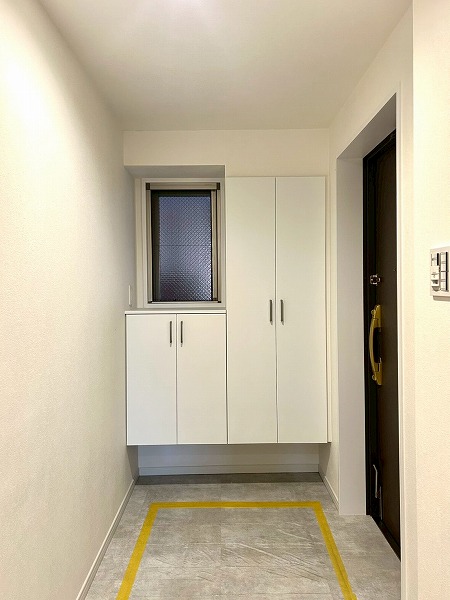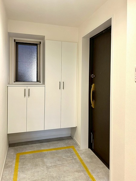 上階の玄関にはシューズボックスが付いており、たくさん靴を収納できる大きさがあります。小窓が付いているので、採光で室内を明るくできるのはもちろん、換気でニオイや湿気を軽減できるので衛生的です。