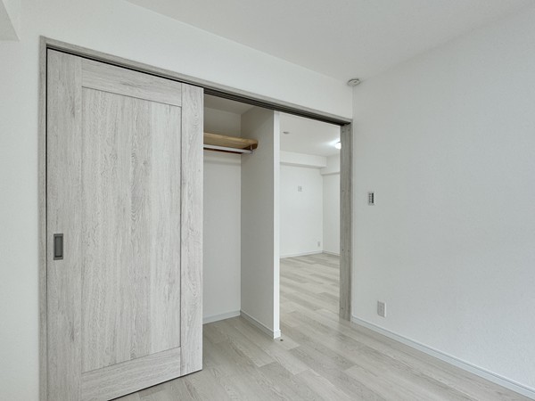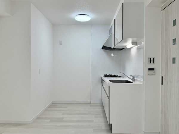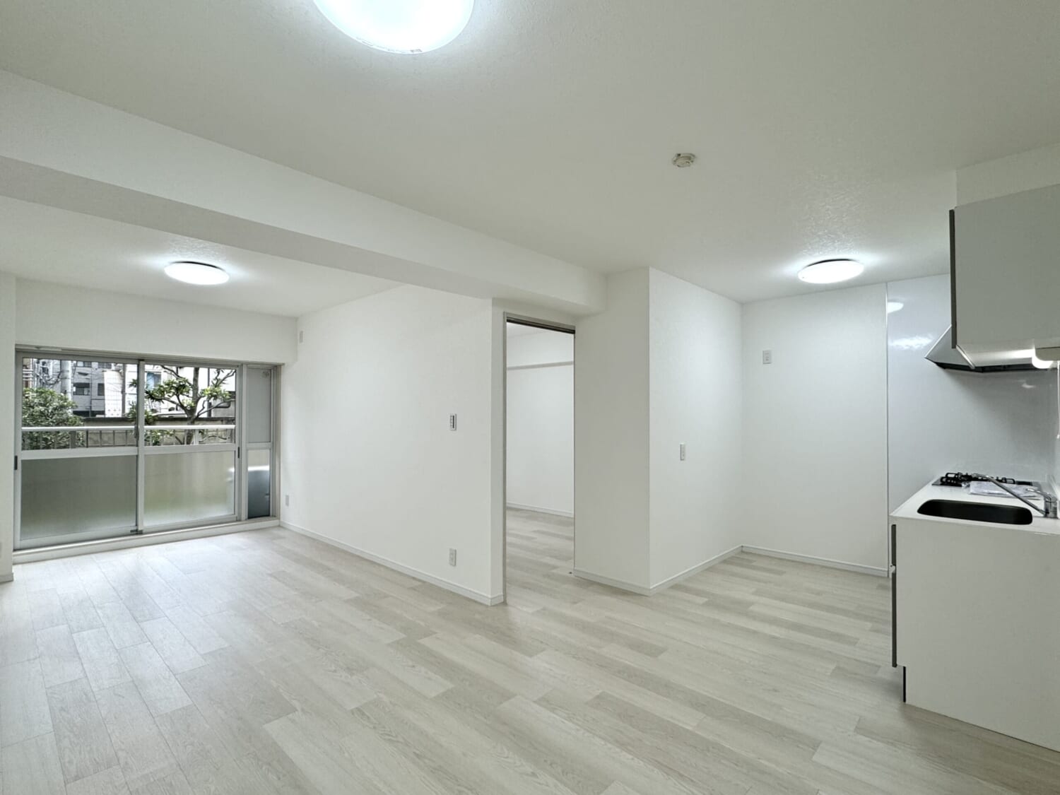 2025年10月にリノベーションが完了した2LDK。真っ白な壁紙に、ホワイトの木目調のフローリング&建具、キッチンにも白が取り入れられ、清潔感あふれる爽やかなお部屋に生まれ変わりました。清々しい新生活をスタートさせることが出来そうですね。