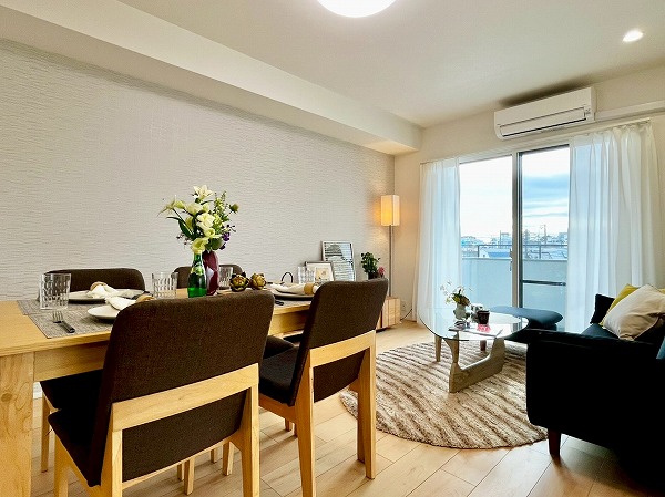 都営浅草線西馬込駅から徒歩12分、東急池上線洗足池駅から徒歩17分の『イトーピア上池台マンション』のご紹介でした。専有面積71.68㎡を誇る、南西向き・3LDKのお部屋は日当たり良好◎角部屋なので、家族だけのプライベート空間を感じられますね。フルリノベーションでは、ホワイトを基調の空間にブルーグレーをアクセントカラーに採用。ところどころに雰囲気を邪魔しないアクセントクロスが貼られ、西洋風のお洒落なお部屋に生まれ変わりました。4階に位置するため眺望も良好で、眼下には新幹線や電車が走る街並みが広がります。電車に目がないお子様には喜ばれるかもしれませんね✧線路に面している方角には全て二重サッシの窓が採用されており、電車の走行音はかなりカットされている印象でした。キッチン背面の引き戸は廊下につながっており、動線が◎。急な来客にも対応しやすい設計になっています。ゆったりとしたメインルームに3つの洋室がついて、家族みんなが安心して毎日を送れるこのお部屋を、是非1度ご覧になってみませんか?お問い合わせお待ちしております♪ ライター:yurika【25L17】