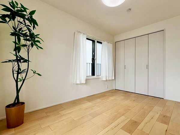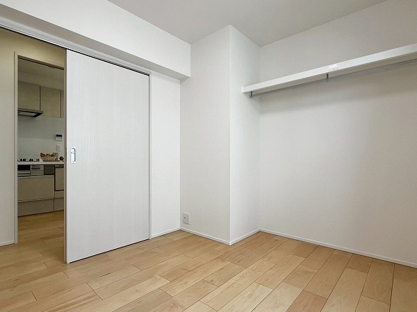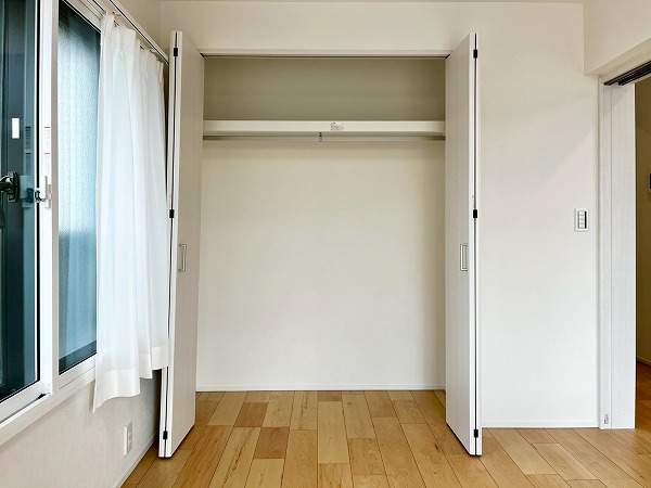 約6帖の洋室には、メインルームからも出入り可能なバルコニーが。LDKに繋がる引き戸は、開け閉めすることで、空間の使い方にバリエーションを生むことができますよ。その他すべての洋室には収納が設けられ、快適な住宅設計が考えられています。