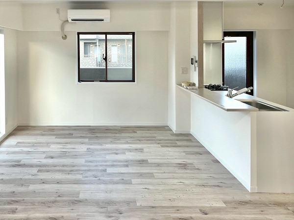 5階部分に位置するお部屋、専有面積58.99㎡の2SLDK。2025年8月にリノベーションが施され、新築のように美しく一新された空間で快適な暮らしが叶います。角住戸につき北東向きの2面採光が魅力。午前中には爽やかな朝日が差し込み、午後には柔らかな光が室内を包み込みます。