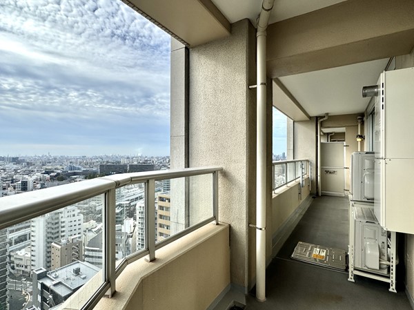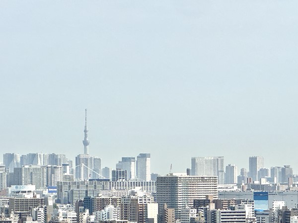 メインルームと約7.6帖の洋室からアクセス可能なバルコニーからは東京湾やスカイツリーを望むことができました。この突き抜けるような眺望は、最上階23階にあるお部屋の特権ですね♪