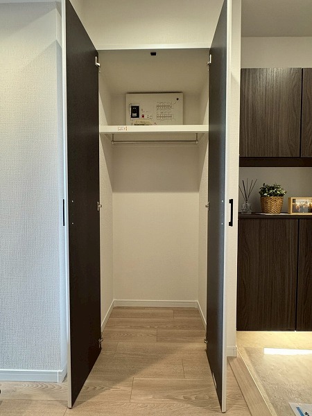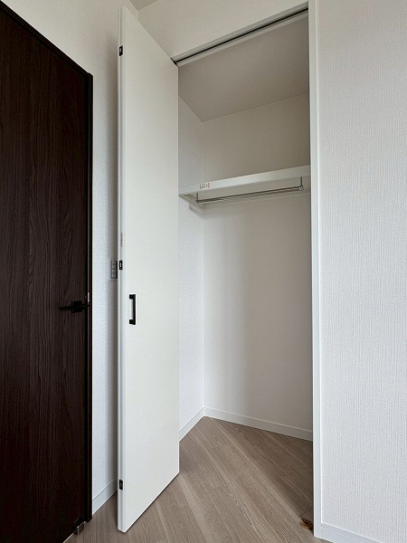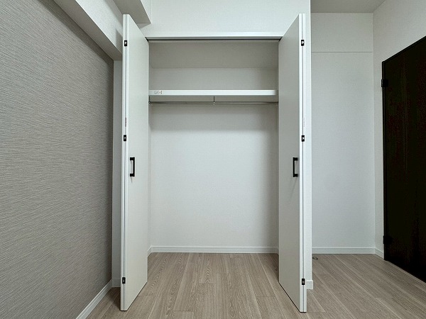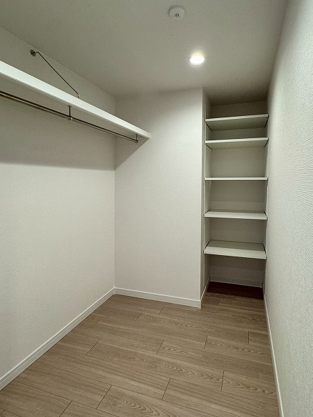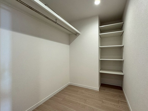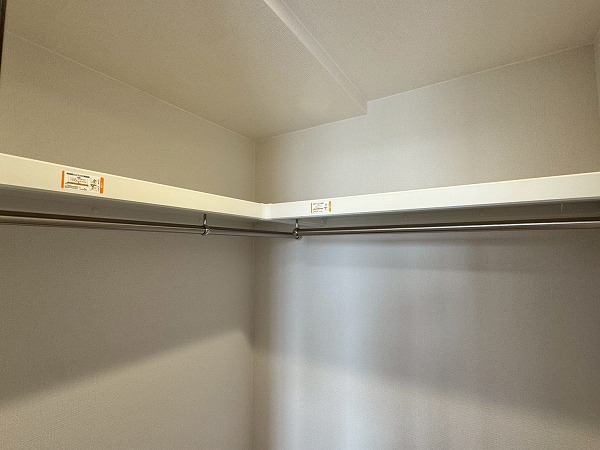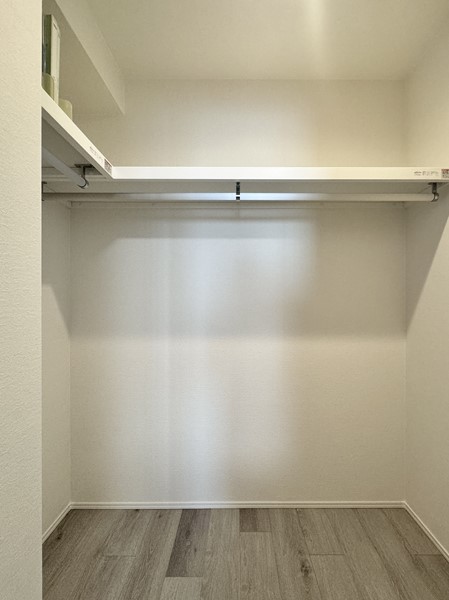 ウォークインクローゼットはご家族の多いご家庭でも楽々収納できそうな広さです。追加で棚を置いて収納力を最大限に活かすのも良さそうですね◎スペースが十分にあるので、ウォークインクローゼット内でお着替えができそうでした。