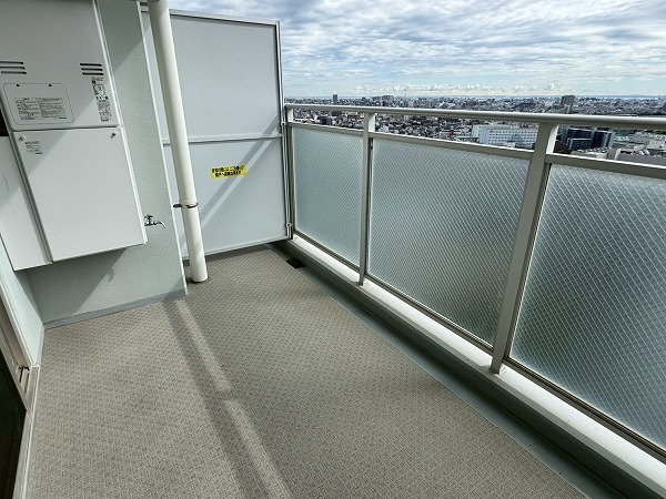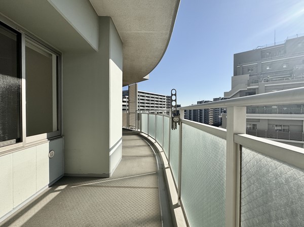 バルコニーは広々としており、ベンチを置いてちょっとしたリラックス空間を作れます。良い眺めを見ながら家族との会話を楽しんだりできそうです。また、日当たりがいいので洗濯物がすぐに乾きそうでした。