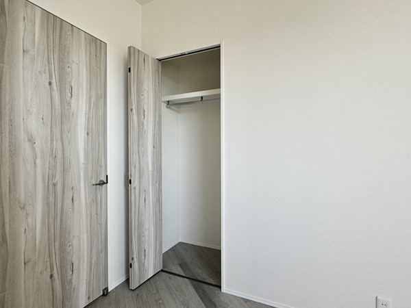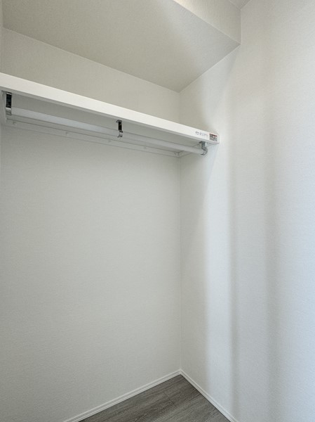 ウォークインクローゼット付きの洋室は朝の準備がスムーズに。衣類やバッグ、シーズンアイテムをたっぷり収納でき、居室は広々と使えます。収納力があるおかげで趣味のスペースやワークデスクも置けるのではないでしょうか。