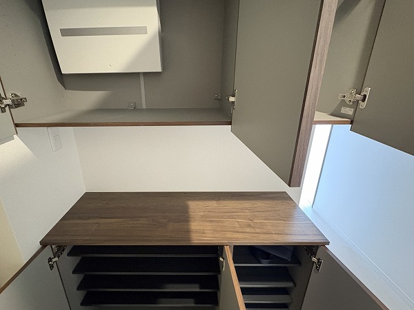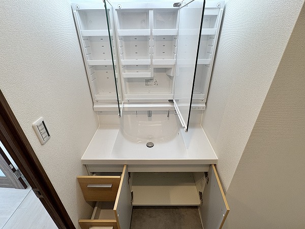 パウダールームは、他のお部屋とは異なりナチュラルな配色です。優しい色味が気持ちをリラックスさせてくれます。明るい室内は汚れなどが目立ちやすく、こまめにお掃除する機会にも◎清潔感があり、素敵なパウダールームでした✧