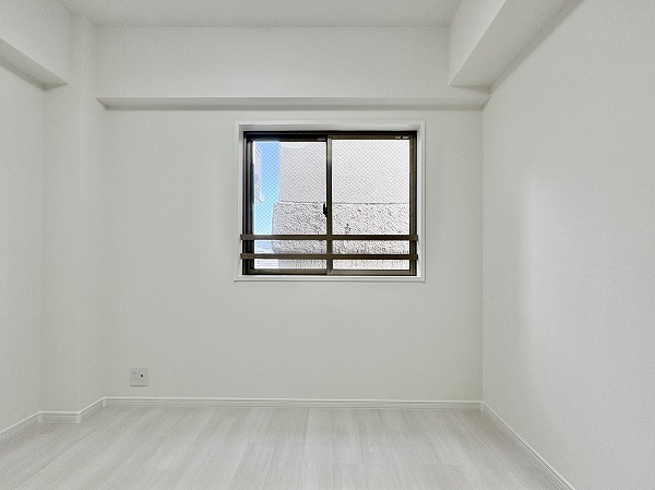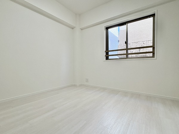 こちらは約4.2帖の洋室です。南西向きの窓がミニマルで可愛らしいです♩窓側にベッドを配置しても良いですが、せっかくならリラックスチェアを置いて読書をするスペースにするなど、趣味を楽しむ空間にしてみるのはいかがでしょうか。
