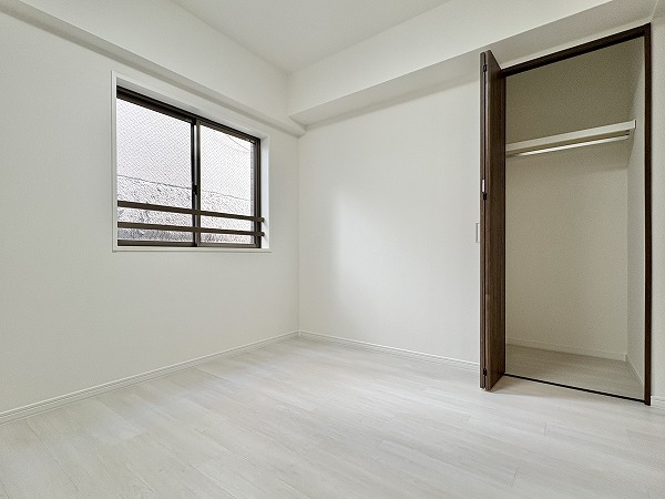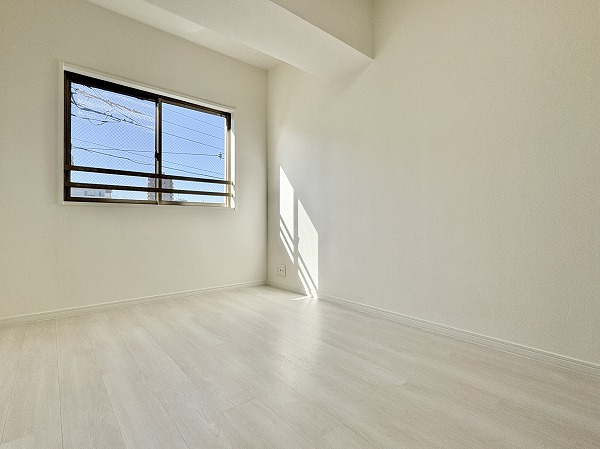 南の角に位置する約6.0帖の洋室です。2面採光で室内は非常に明るくなっておりました☀それぞれの窓際にベッドやデスクを配置すれば、デイタイムは自然光浴び放題!お部屋から出なくても日光浴が楽しめます◎