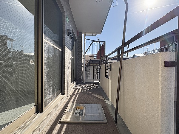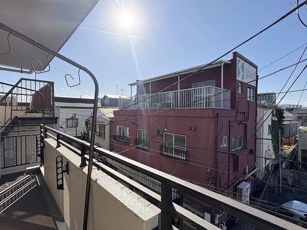 バルコニーは非常に明るく温かい空間でした☀マンション周辺には太陽を遮る建物がなく、日中は絶えず陽光が入り込むナイスバルコニー。低層階の住宅が多いため、広々とした空が望めます。温かく、天気が良い日は椅子を出してのんびりとした生活を過ごしましょう♨