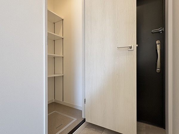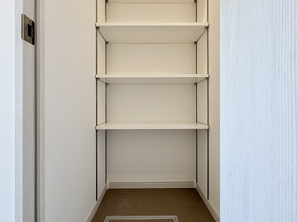 玄関にはシューズインクローゼットが付いています。脱ぎ捨てた靴や傘などで何かとごちゃごちゃする玄関に、シューズインクローゼットがあると非常に役立ちます。また、アウトドアグッズやベビーカーなど、屋内に収納したくないものを入れておけるのも強みです◎