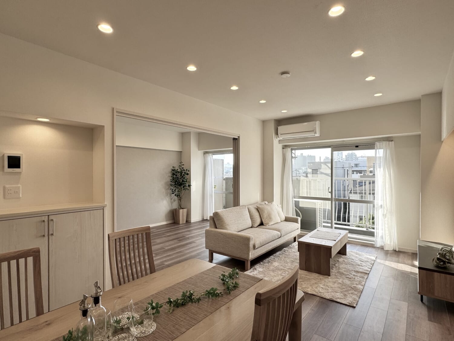 今回ご紹介した『蒲田グリーンパーク』は、蒲田駅徒歩9分、梅屋敷駅徒歩10分ほどの位置にどっしりと佇むビッグコミュニティー。小学校や中学校が近くにあり、敷地内にはちょっとした遊具がある広場もありました。子育て世帯にもオススメできる環境が整っています。お部屋は新規リノベーションによって隅々までピカピカに✧水回りの設備も一新されたので、新築に近い感覚でお住まいいただけそうです。お部屋は4階にあり決して高層階ではありませんが、バルコニーの正面には視線を遮るような背の高い建物がなく、穏やかな街並みを一望することが出来ました。南西向きで日当たりも良く、日中は電気を点けなくても十分生活できそうです◎家具付きのお部屋なので、メインルームに置かれているおしゃれなダイニングセットやソファはそのままご利用いただけます♪引っ越しの負担が軽減できるのも嬉しいですよね。ぜひ一度内見してみてください。 ライター:kayo【25K28】