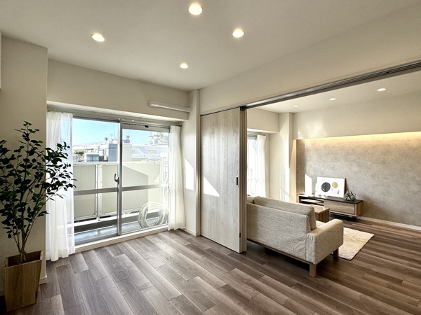 1LDKに2つのサービスルームを備えた72.68㎡の住まいは、3LDKのように自由に空間を使いこなせるゆとり感が魅力。リノベーションで整った室内は窓から差し込む光に包まれ、ペットと過ごす時間も快適!家具やレイアウトを工夫すれば仕事も趣味も日常も理想通りに彩れそうです。