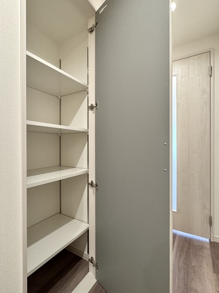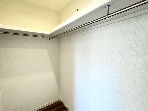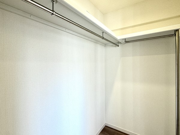 洋室のウォークインクローゼットは、衣類やバッグ、小物まで美しく収められる充実の収納力。サービスルームもクローゼット完備で、趣味や仕事の道具を整理しやすく居室はいつもスッキリ。収納力の高さが、生活の自由度と快適さを格段に引き上げてくれますよ!