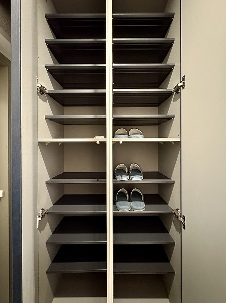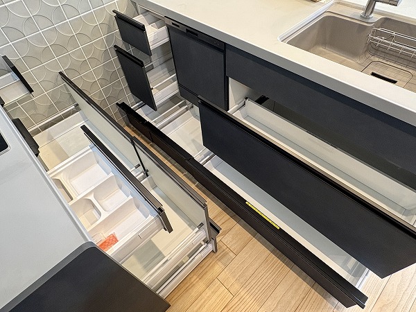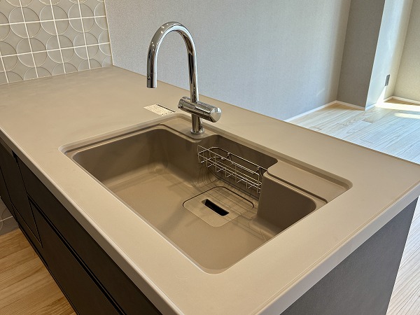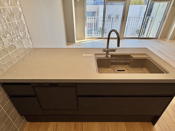 キッチンは調理動線が快適な2列型を採用。コンロが壁側に設置されているため、匂いや煙が室内に広がりにくく快適です。豊富な収納に加え、食洗機も完備されており、忙しい日の家事もスムーズに。