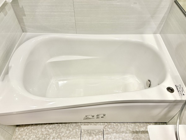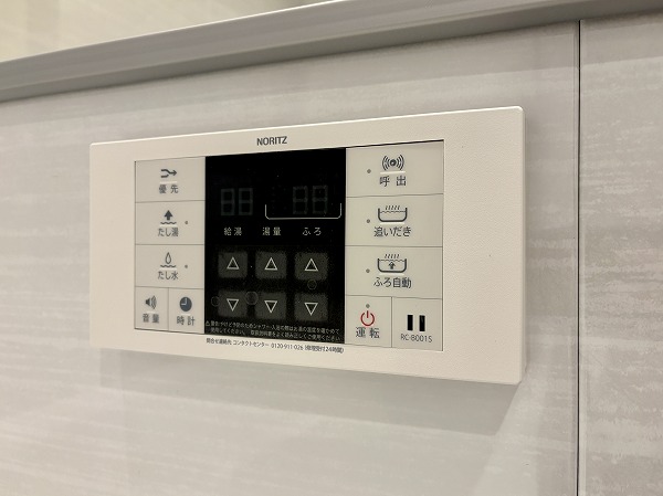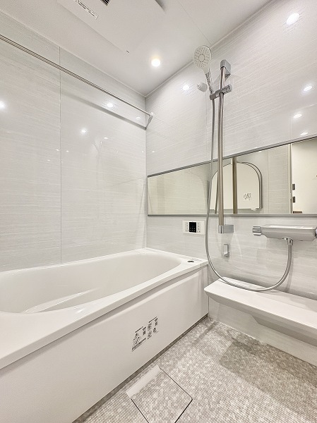 シンプルで清潔感のあるバスルームには、空間を広く見せるワイドミラーを採用。足を伸ばせるゆったりサイズの浴槽には追い焚き機能を備え、いつでも快適な湯温でバスタイムを楽しめます。