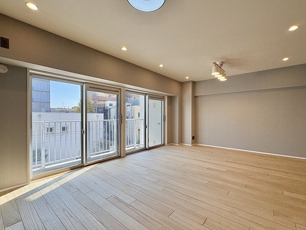 3階部分に位置する2LDK。専有面積65.85㎡と2人暮らしに過不足のないゆとりを備えた住まいです。2025年9月にリノベーションが施され、室内は新築同様の美しさへと一新。南東向きの開口部からは心地よい光が射し込み、1日の始まりを明るく迎えてくれます。