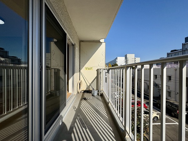 5.64㎡のバルコニーは南東向きで、朝の陽光がたっぷり注ぎます。前面に高い建物がなく、開放的な眺望が魅力。洗濯物が良く乾きそうなアウトドアスペースです☀