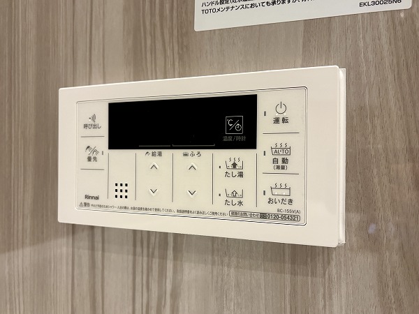 木目パネルを採用したバスルームは、温もりを感じられる落ち着いた雰囲気。小窓が設けられているため換気もしやすく、湿気対策も安心です。追い焚き機能や浴室乾燥機など、日々の入浴を快適にする設備も充実。シャンプーラック付きなので、足元をすっきりと保つことも◎