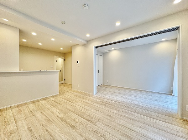 メインルームに隣接した約4.7帖の洋室は、スライドドアで仕切られた設計。ドアを開ければLDKと一体となり、開放的な空間に。閉めれば独立した居室として使えるため、キッズスペースやワークルームなど用途は様々。お子様を見守りながら家事ができるのも嬉しいポイント♪