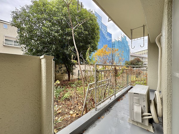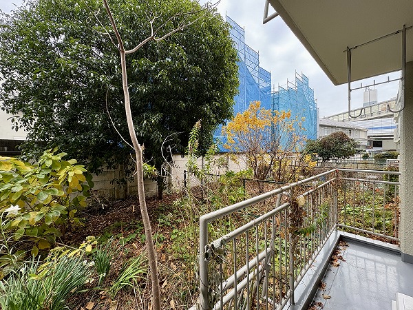 こちらの住戸のバルコニーの先には約29.18㎡の専用庭が。1階ならではの特権として、外の空間を日常に取り込めるのが大きな魅力です。植物を育てたり、チェアを置いてくつろいだりと楽しみ方は自由自在。目隠しとなる塀が設けられており、周囲の視線を気にせず過ごせるので安心ですよ✿