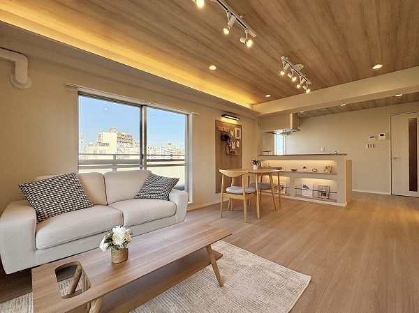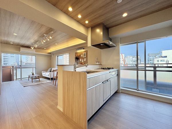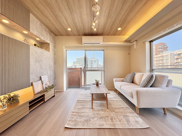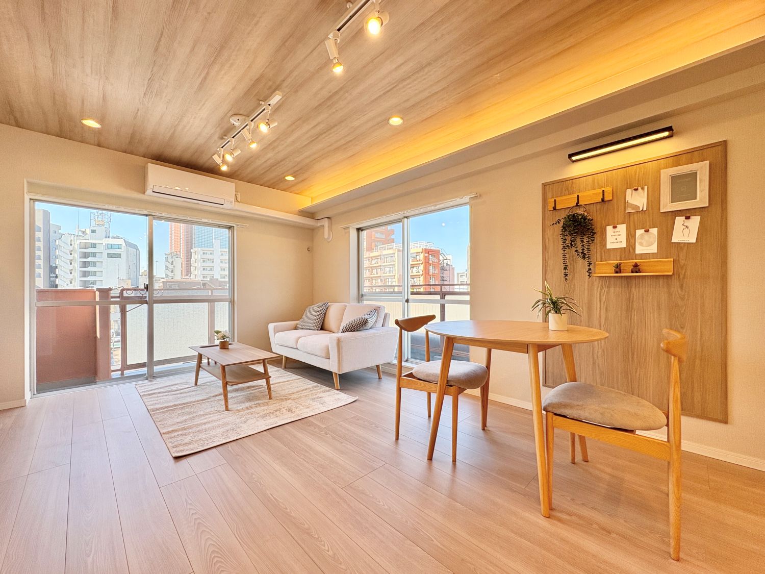 三軒茶屋駅から徒歩3分&スーパーが道路を挟んで目の前という立地が魅力的な『アンバサダー三軒茶屋』!今回ご紹介するのは上層階×ルーフバルコニー付きの三方角部屋です✧さらにペットを2匹飼育可能、新規内装フルリノベーション済み、家具・エアコン付きという希少性の高いひと部屋。居室のデザインはベージュを基調としており、あちらこちらに備え付けのインテリアラックが。ラック以外にもマグネットがくっつく壁材を取り入れたり、数種類のアクセントウォールを使用していたり、何かとインテリア性の高い内装となっています✦ご内見希望など、ぜひお気軽にお問合せください。 ライター:yuki【25K27】