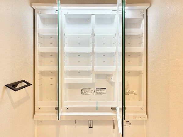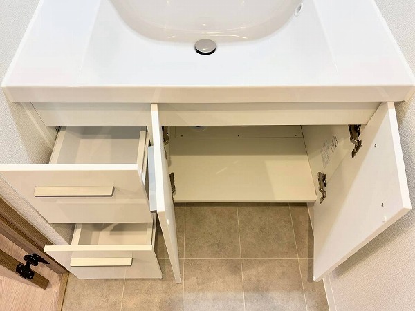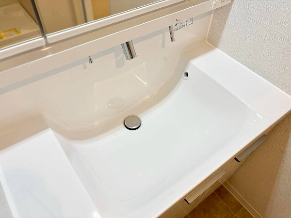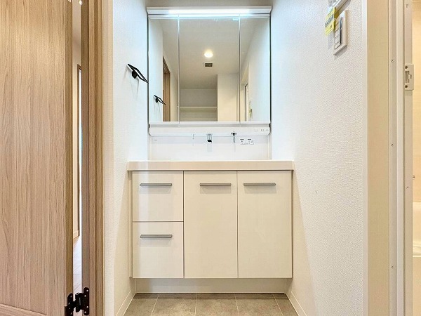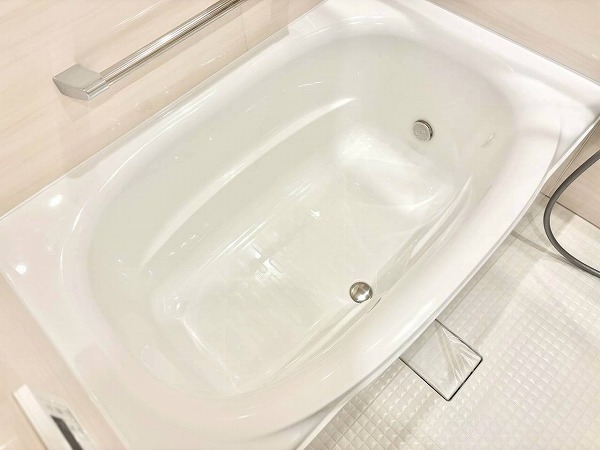 ペールクリーム色のパネルを採用したバスルームは、爽やかで可愛らしい印象。明るい配色で空間が広く感じられます。バスタブは追い焚き機能付きなので、家族それぞれの時間に合わせてゆったりと入浴可能。好きなタイミングで快適なリラックスタイムをお楽しみください♡