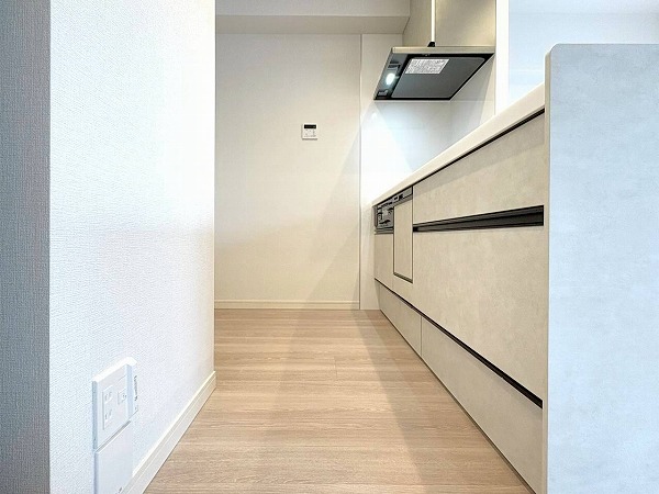 約13.5帖のメインルームは程よい広さと使いやすさを兼ね備えた空間。角部屋ならではの2面採光により、室内には柔らかな光と心地よい風が行き渡ります。内装はクセのないシンプルなデザインなので、ナチュラルからモダンまで幅広いインテリアと相性が良さそう◎