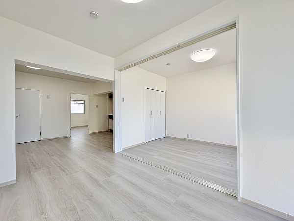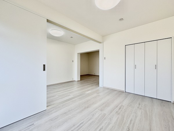 隣接する洋室はスライドドアでつながり、生活スタイルに応じて自由に使い分け可能。開放すれば光と風が通り抜ける一体空間となり、閉めれば静かに集中できる個室に早変わり。メインルームから目が届きやすく子供部屋としてもピッタリではないでしょうか◎