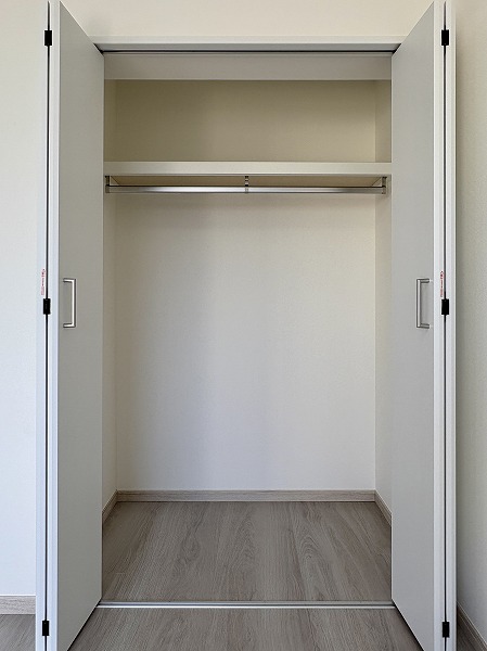 両洋室に設けられたクローゼットは、日常の衣類や小物を整理整頓できる頼もしい存在。収納スペースが充実しているため、部屋がすっきり広く使え、家族それぞれのプライベートも守りながら、快適で使い勝手の良い住空間を実現できますよ。
