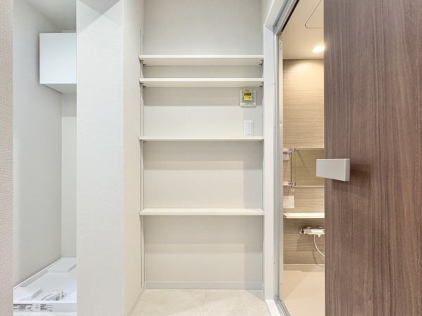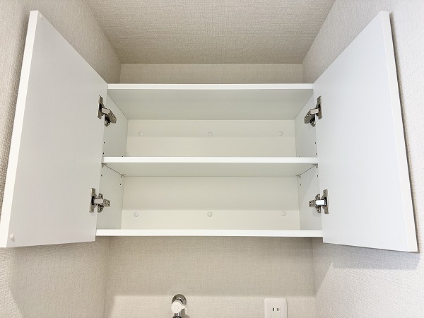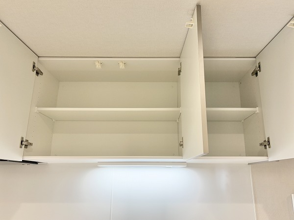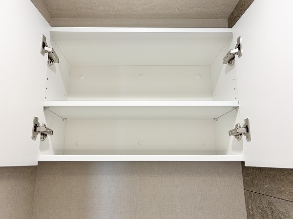 木目×ホワイトの内装デザインは、どんなテイストの家具やインテリアとも合わせやすく自分好みのお部屋作りを楽しめそう♡可動棚付きの収納が設けられているので、日用品のストックや季節ものの飾りなどをすっきりとしまうことができます。