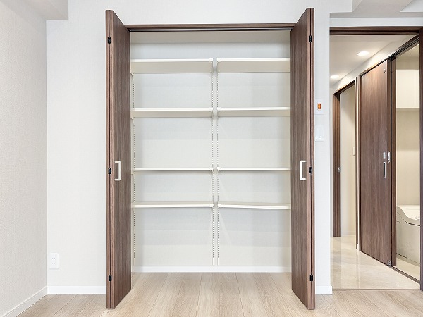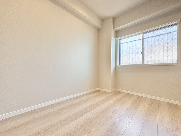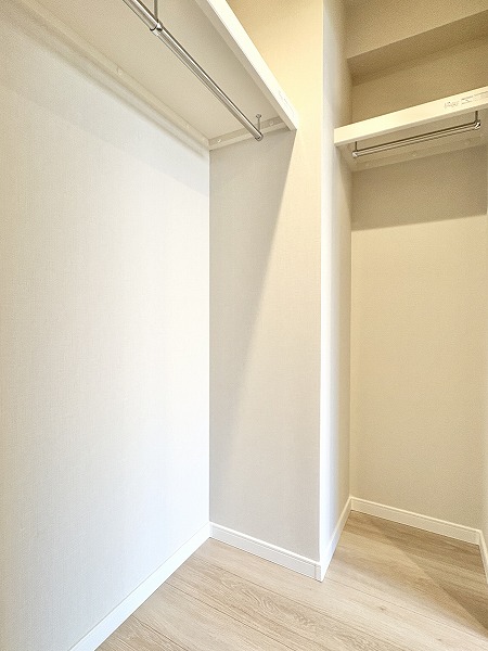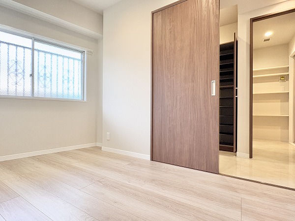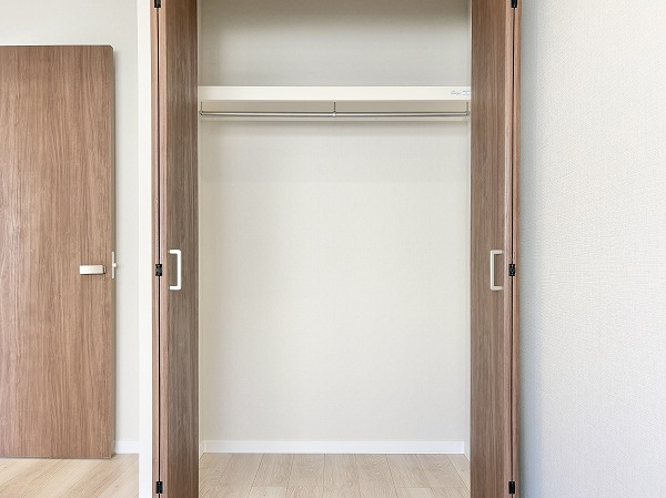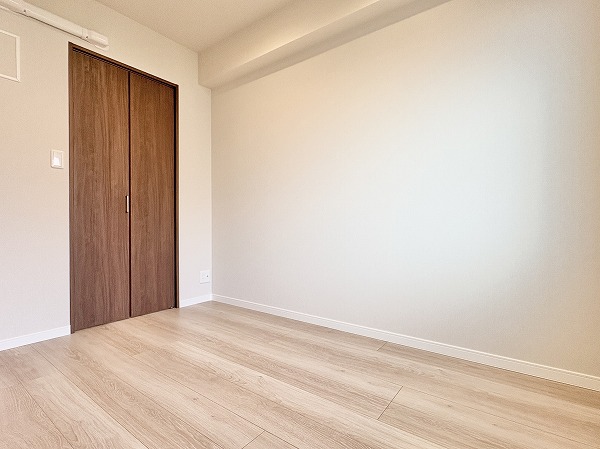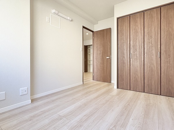 玄関を入ってすぐ右には、約4.76帖の洋室があります。プライベートの空間をしっかりと確保できるのが嬉しいですよね。ウォークインクローゼットが設置されていたので、丈の長いアウターやかさばりやすいダウンジャケットも綺麗に収納可能です◎