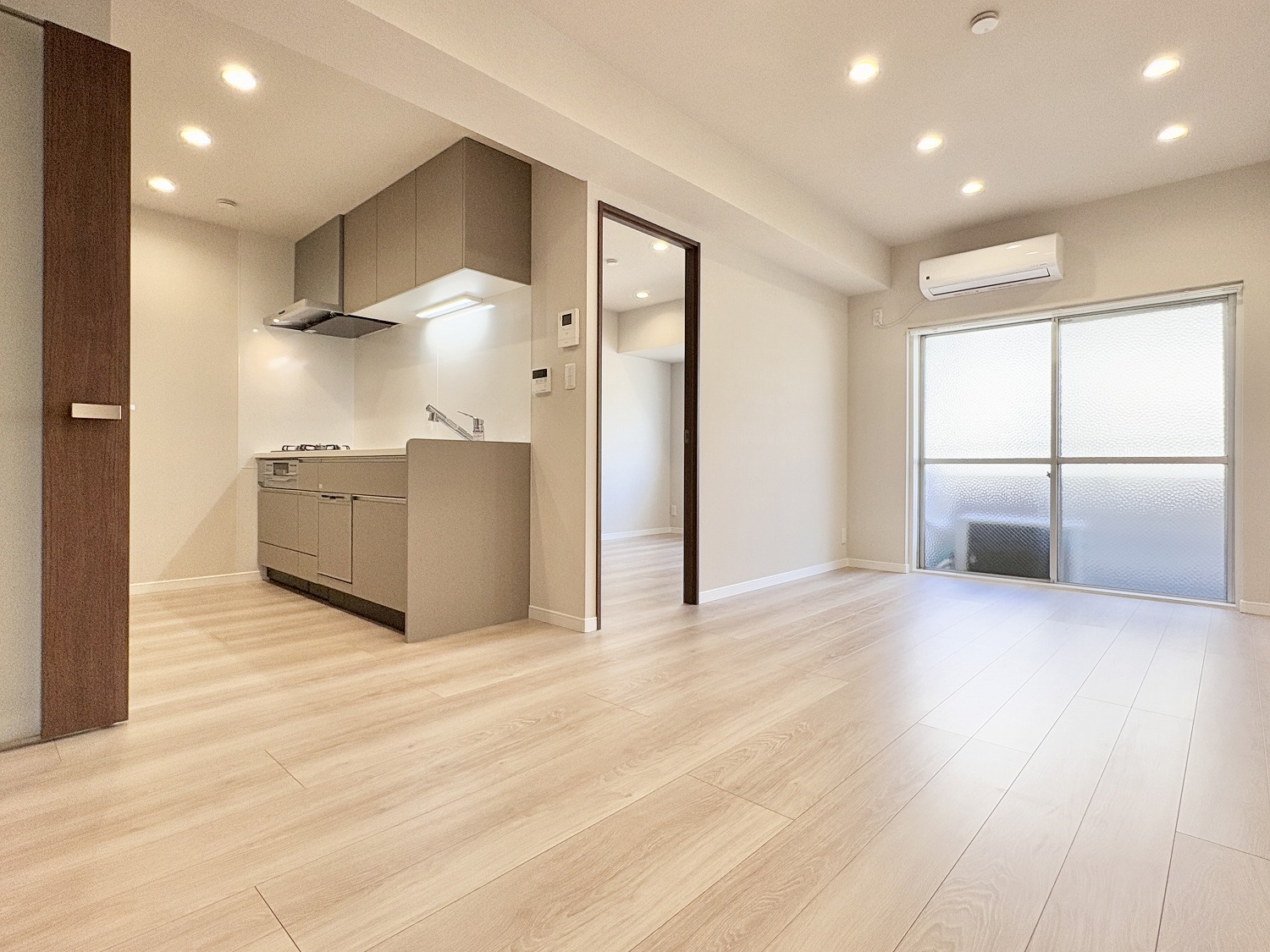 専有面積56.59㎡、ゆとりのある1人暮らしやパートナーとの2人暮らしにぴったりな2LDKのお部屋をご紹介します✦2025年10月にフルリノベーションが完了したばかりで、室内は新築のようにピカピカでした。
