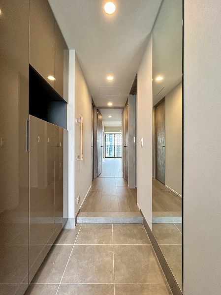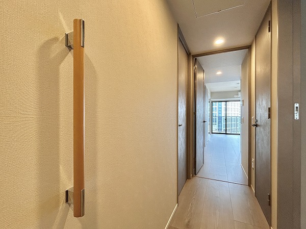 玄関から居室までの動線に室内廊下を設けたことで、来客の視線が直接お部屋に届かずプライバシーがしっかり守られる造りに。廊下には手すりも備わっているため、ご家族皆さんが快適に過ごせる工夫が随所に感じられました。