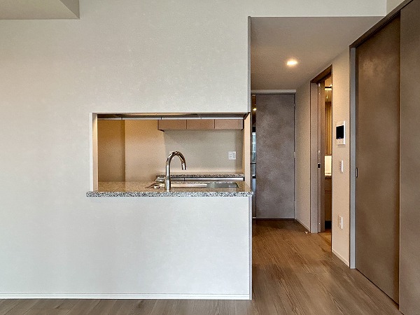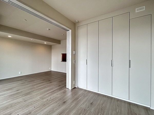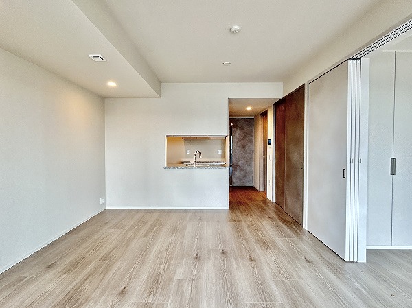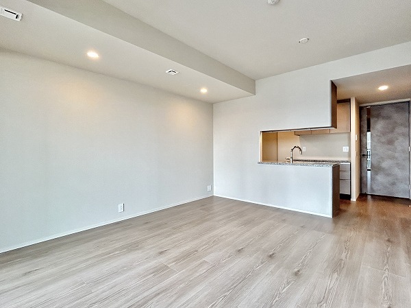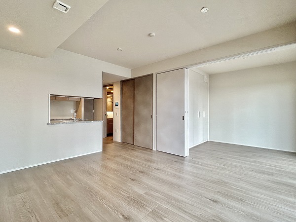 リビングダイニングキッチンはゆったり約16帖の広さを確保。東向きのバルコニーから明るい光が差し込み、部屋全体が爽やかで開放的な雰囲気に包まれています。隣接する約5帖の洋室と扉をつなげれば、なんと20帖以上の大空間としても活用可能。