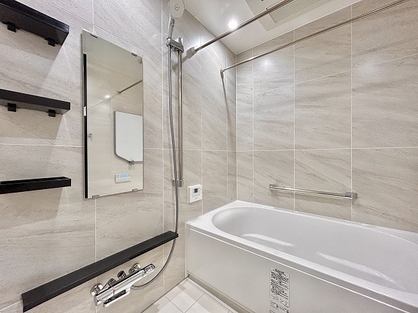 浴室には追い焚きや乾燥機能に加えミストサウナを備えています。毎日の入浴がただ体を洗う時間ではなく、自宅で気軽にリフレッシュできる至福の時間に。さらに天井のランドリーパイプを使えば、雨の日や外出できない日でも洗濯物をすっきり干すことができますよ♩