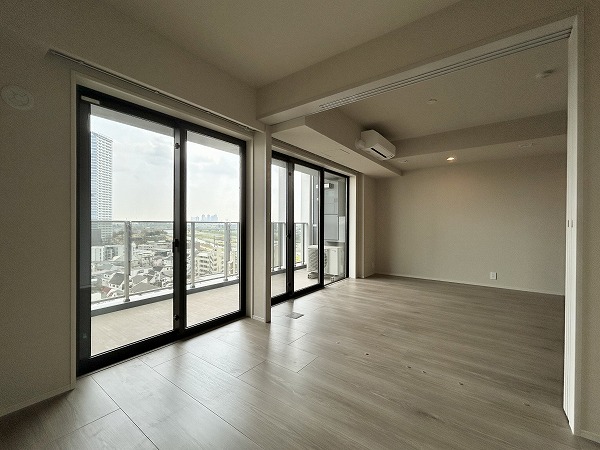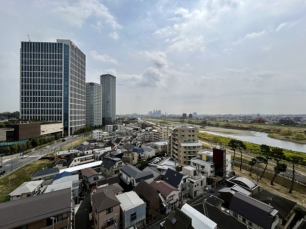 バルコニーからの眺めは、まさに二子玉川ならではの風景。右手には穏やかな多摩川が広がり、左手には「二子玉川ライズ」の街並みが見渡せます。川と街の両方を一度に楽しめるリバービューは、このエリアならではの特別な景色ですね☀