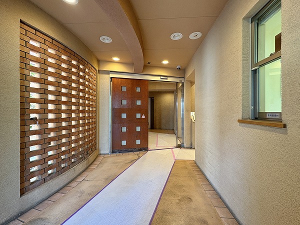 エントランスは外から見えない、プライバシーに配慮された造りとなっています。オートロックに加えて管理人室と防犯カメラが備わっているため安心。