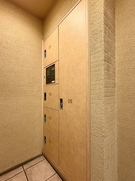 エントランスに宅配ボックスが設置されていました。ご自宅を空けるタイミングが多い方も、気兼ねなくネットショッピングを楽しめますね。