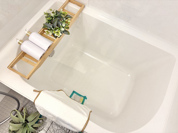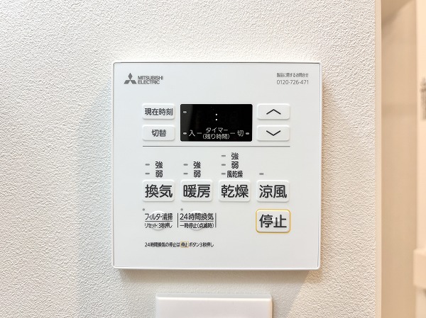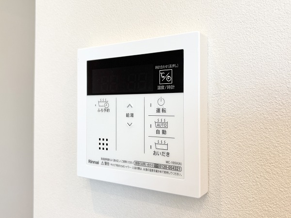清潔感あふれるバスルームはワイドなミラーが奥行きを出し、空間にゆとりを持たせています。追い焚き機能が搭載されているため、忙しいときでもワンタッチでお湯を温め直すことができて便利です◎