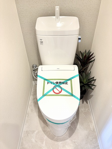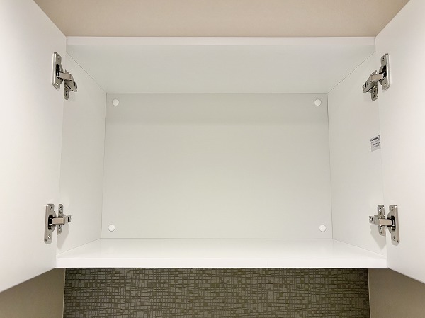 シンプルでありながらも飽きのこないデザインの独立タイプのトイレ。手洗い一体型で節水に取り組めるのが嬉しいですよね。上部にはトイレ用品を収納できるキャビネット付きで、空間をすっきりと整えることができますよ。