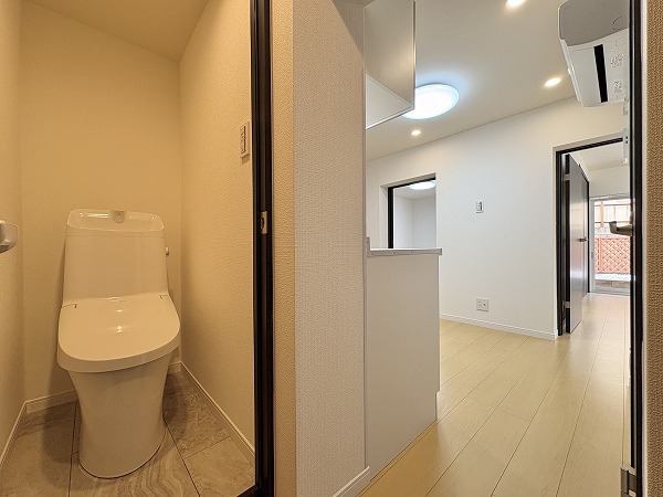 『駒留マンション』は東急世田谷線の松陰神社前駅より徒歩10分ほどのマンションです。松陰神社前の魅力は活気あふれる商店街!昔ながらの八百屋さんや精肉店のほか、お洒落なコーヒースタンド、炭火薫る和食店など、多彩なジャンルの店舗がズラリと並んでいます。人通りも適度に多く、まさに「生きている商店街」といった印象です。商店街を抜けた先にはイチョウの葉が綺麗な世田谷通りが。世田谷線沿いならではの穏やかな街並みで、落ち着いて暮らしたい方にピッタリな環境です◎渋谷方面にお出かけの場合、田園都市線が乗り入れる駒沢大学駅を利用するのもおすすめですよ。ご紹介したお部屋は1階に位置しており、お出かけ時の移動が楽々。専用庭付きの1階・2DKです。新規内装フルリノベーション済みなので、新築気分で暮らせます。モノクロベースのシックなデザインですが、片方の洋室は2面採光になっており明るい雰囲気。洗濯機置き場と収納棚がまとまったランドリースペースが付いているのも便利でいいなと思いました。単身でのお住まいやセカンドハウスにいかがでしょうか✿お気軽にお問合せください。 ライター:yuki【25K14】