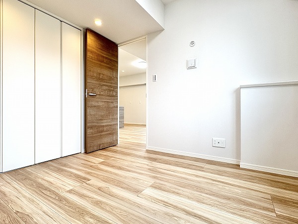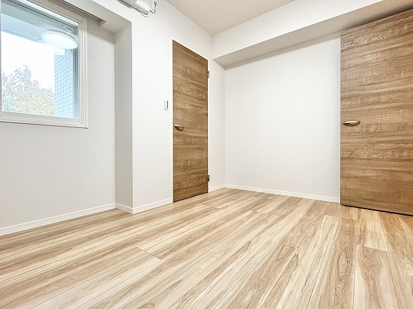 約6.0帖の洋室はエアコン付きで、入居してすぐに快適な暮らしをスタートできます◎大容量のウォークインクローゼットが設置されているため、季節もののアウターや丈の長いワンピースなども綺麗に保管できますよ。