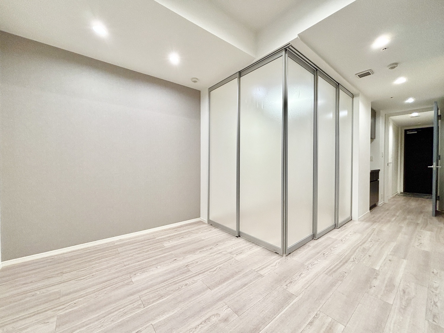 ベッドルームはコンパクトですが、 仕切りを開ければ広いワンルームっぽい空間にもできるのが嬉しい♬