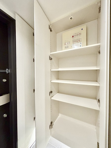 リノベーションの綺麗さは玄関に入った瞬間から感じられます♡大容量のシューズボックスは、靴だけでなく防災グッズや雨具もしまえる優れもの✧フロートタイプになっているので、圧迫感を軽減してくれますよ♥お部屋の顔に相応しい玄関です✧