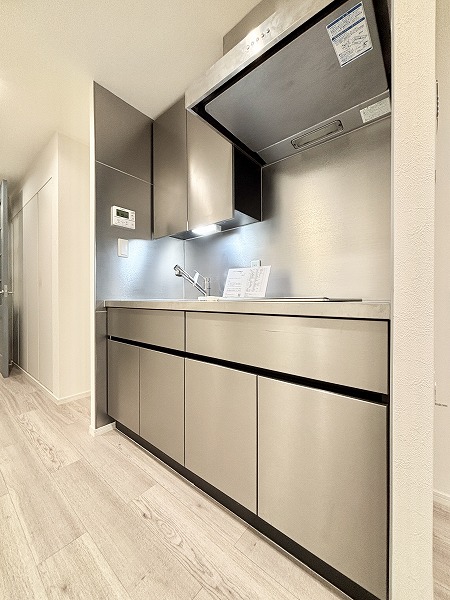 キッチンは集中力が高まる壁付タイプです✦上下に収納スペースを確保しているので、ついつい増えがちなキッチン用品も綺麗に整理整頓できちゃいます♡食器などはカウンター収納を活用してくださいね♪お部屋の雰囲気を壊さないお洒落なデザインも嬉しいです♬