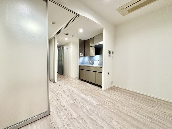 ベッドルームが約3.0帖とコンパクトではありますが、仕切り戸を開放すると、大きなワンルームのような使い方ができます✦洋服などはリビングの入り口にあるクローゼットを使ってくださいね♪大容量なので、洋服以外の物も保管できますよ♩