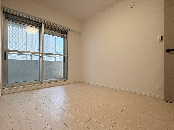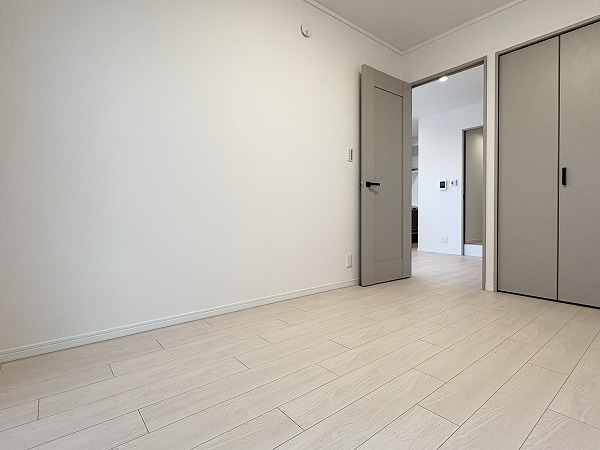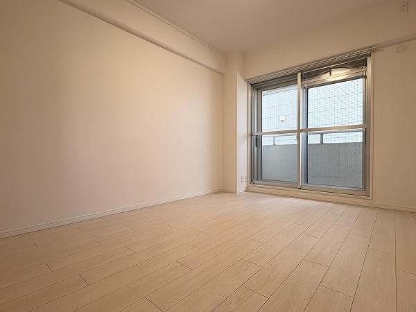 約6帖の洋室はナチュラルテイストな内装デザインが採用されているので、どんな色の家具やカーテンでも合わせやすくお気に入りのインテリアをお楽しみいただけます。大きなテラス窓からバルコニーへ出入り可能です。