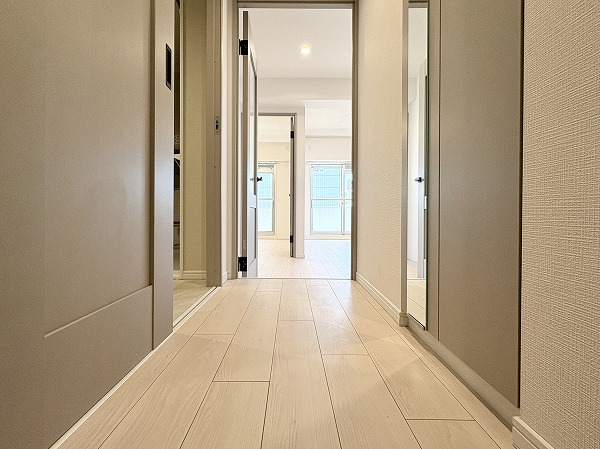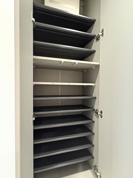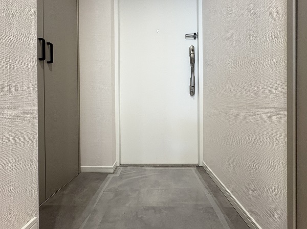 モダンでオシャレな玄関の床は見た目の良さだけではなく、汚れが目立ちにくいというメリットがあります◎横にはトールタイプのシューズボックスがあるため、玄関周りに靴が散らばることなく常に綺麗に保っておくことができそうです。